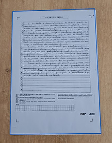 Você envia uma foto da redação escrita à mão...